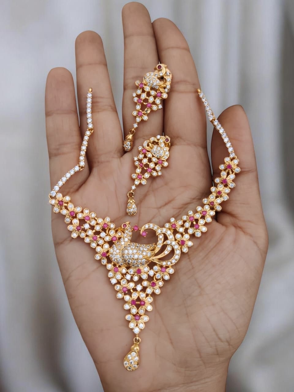 Be the first to review “Cz Golden peacock necklace”