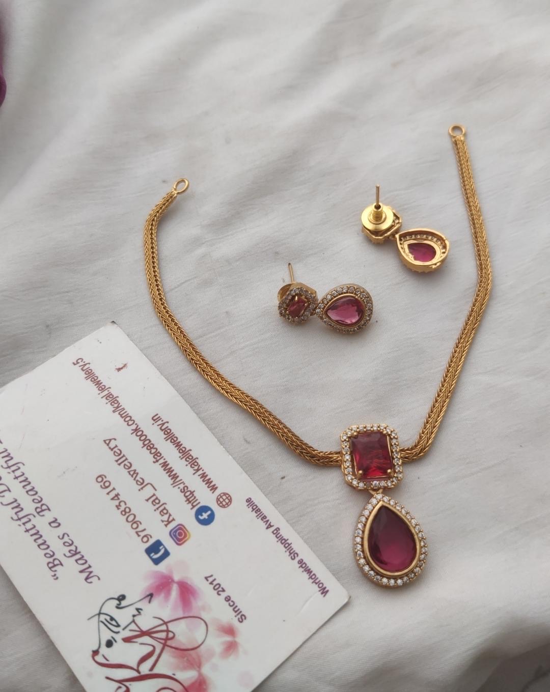 Cz maroon necklace set