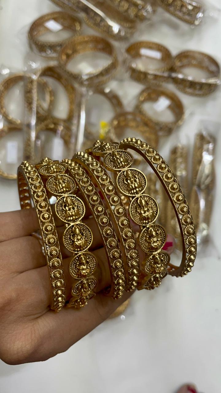 Golden full Temple Lakshmi kemp bangles set of 6