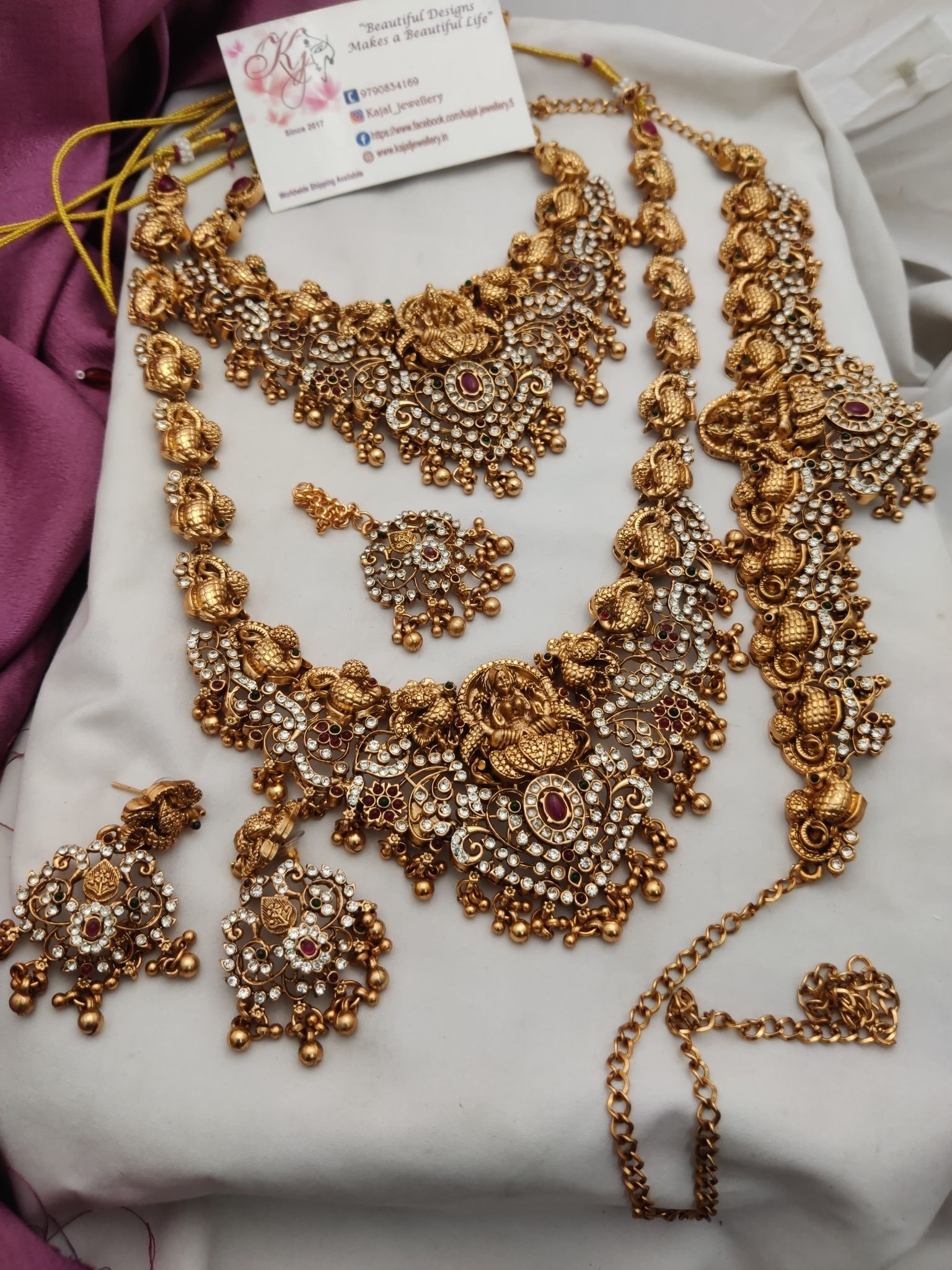 Be the first to review “Lakshmi semi set golden with white stones”