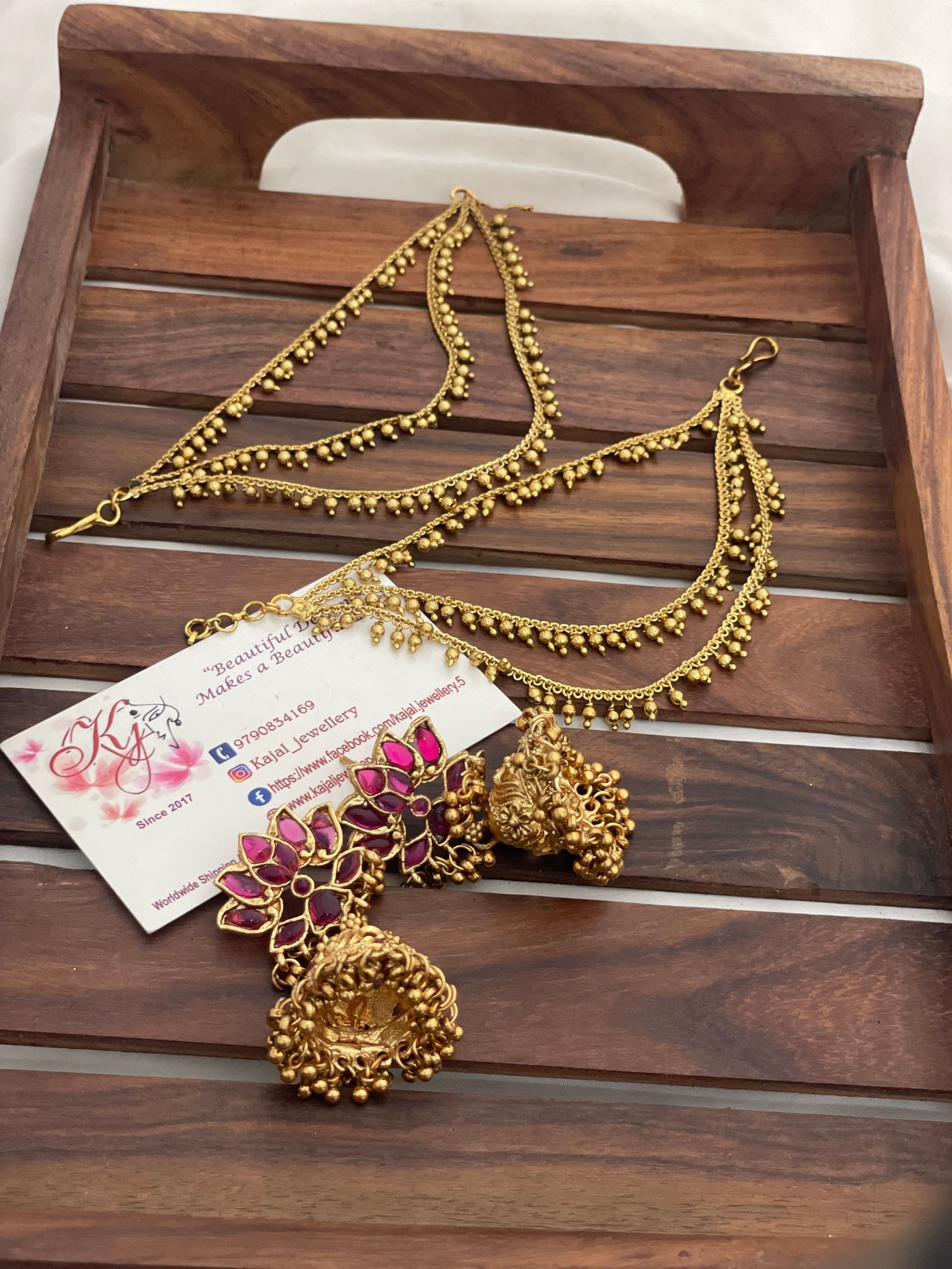 Be the first to review “Lotus Jhumka with golden Earchain”
