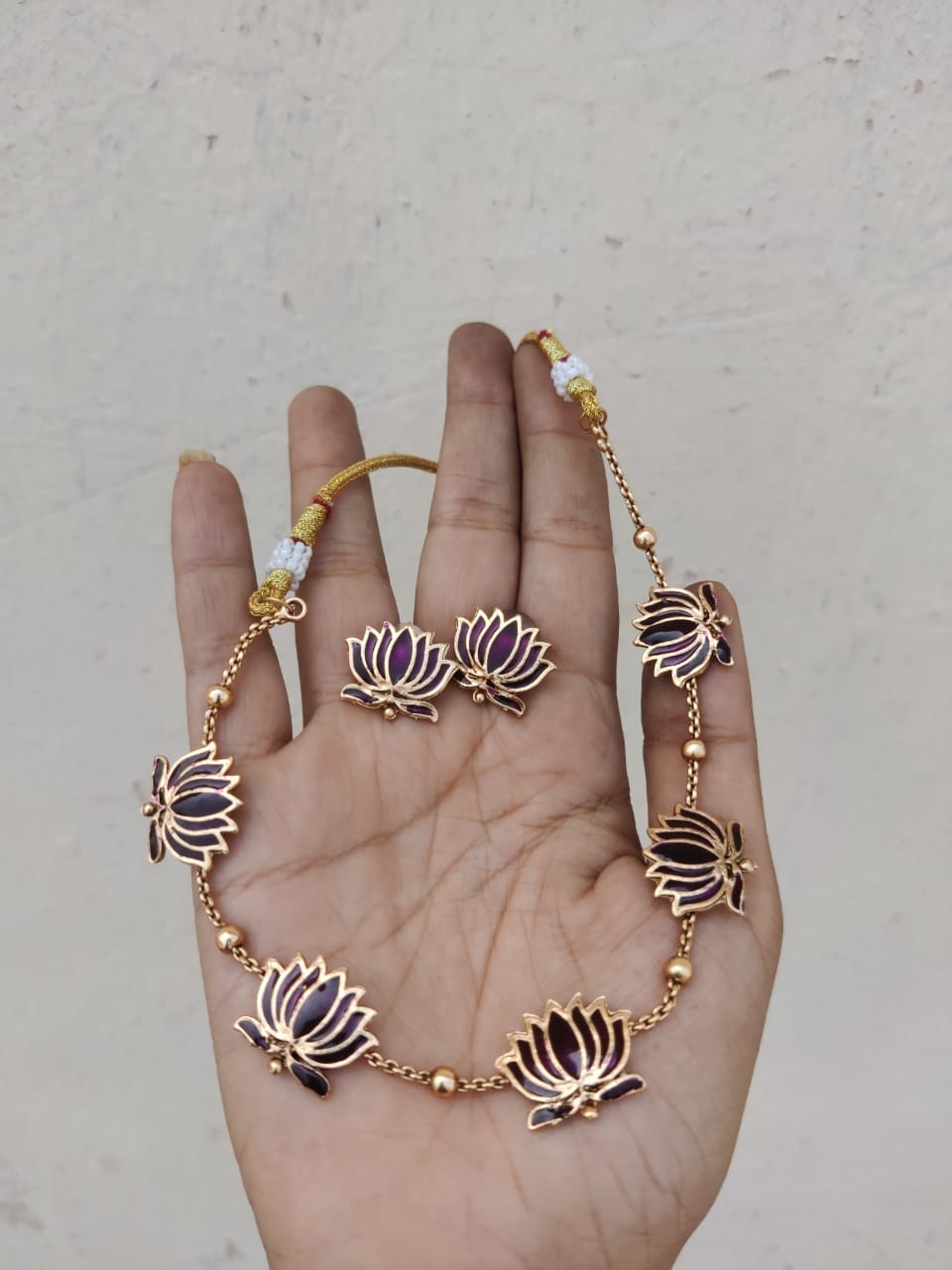 Maroon kemp lotus necklace set