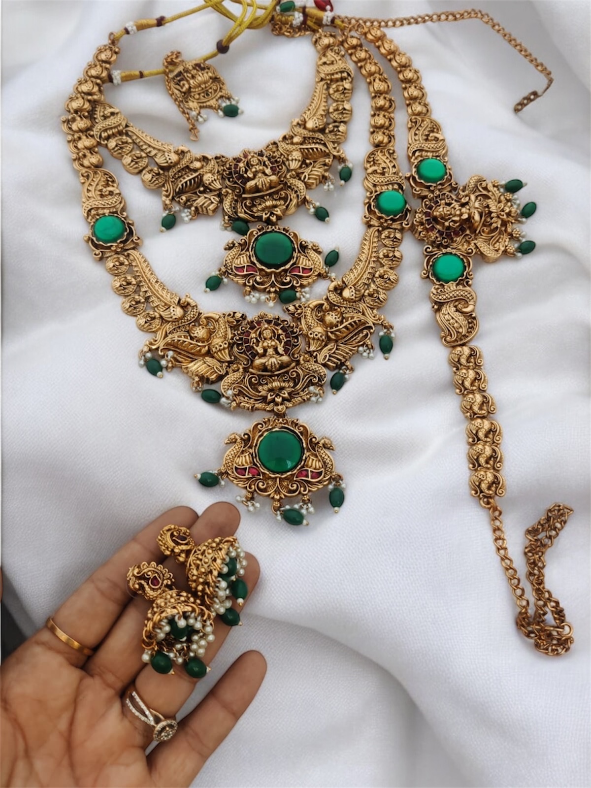 Temple golden green beads semi set