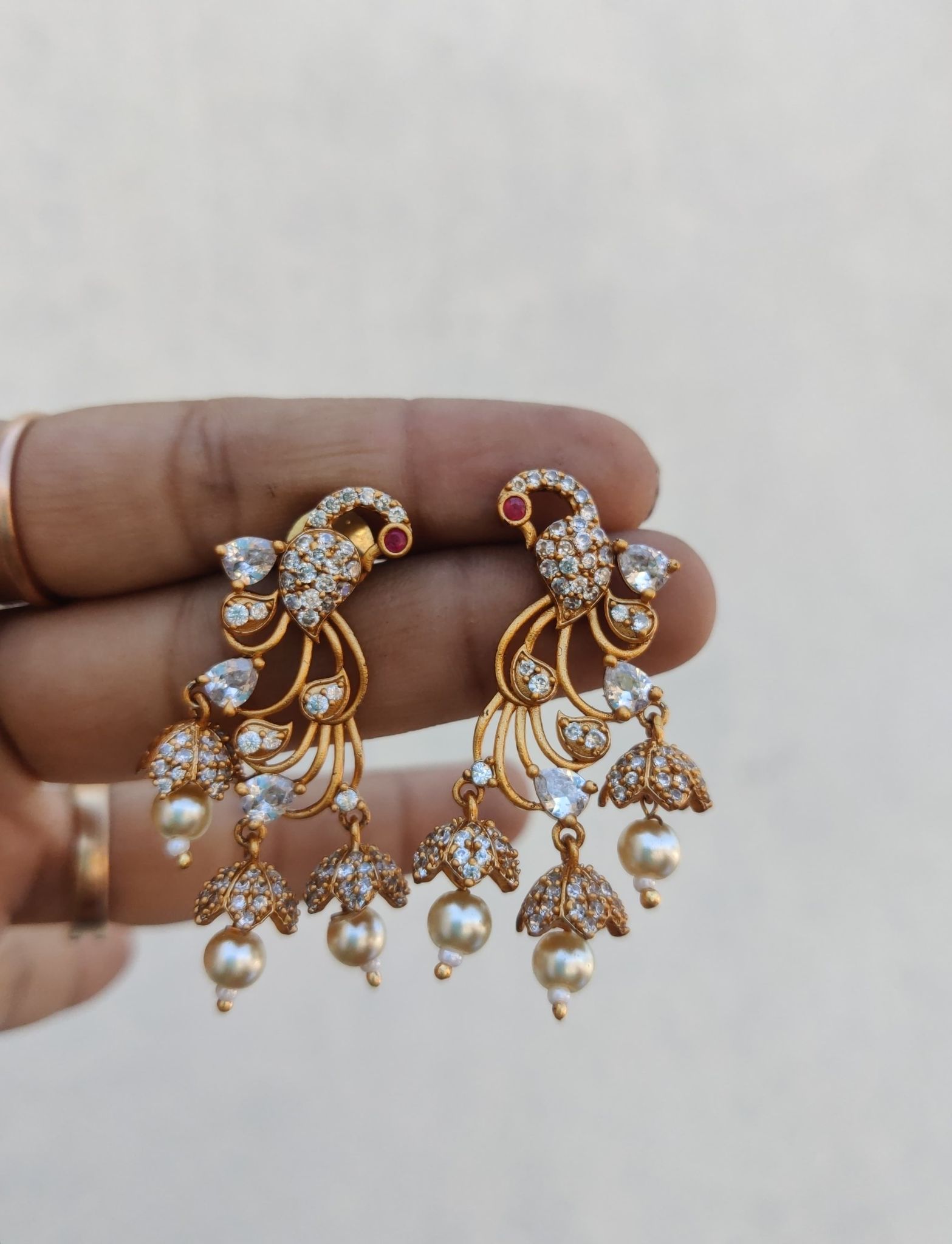 White peacock earrings